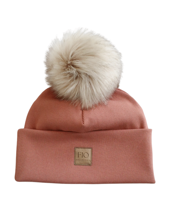 Pehmoinen ja lämmin ribbipipo ihanan muhkealla tekoturkis tupsulla. Pipo sopii n. 52-57cm päähän.